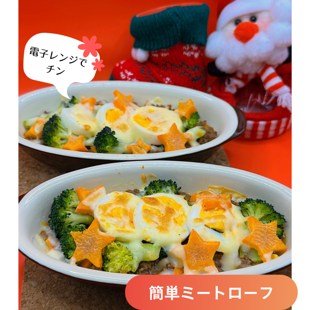 - 耐熱容器に合い挽き肉、①、⭐︎を混ぜ合わせ、小房に分けたブロッコリーをのせて、ふんわりとラップをして600Wで7分加熱する。